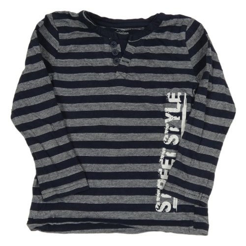 Tmavomodro-bílé pruhované triko s nápisem Topolino