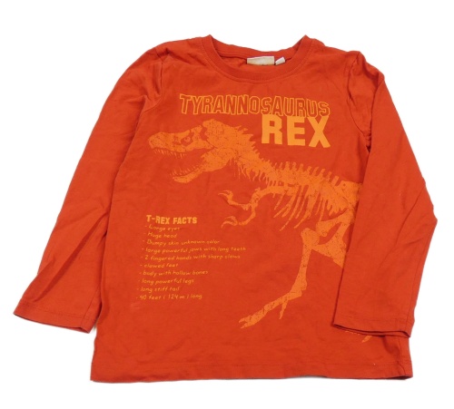 Červené triko s dinem a nápisy Kids