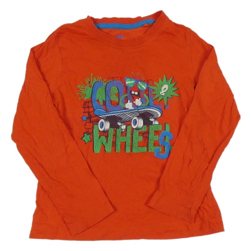 Červené triko se skateboardem a příšerkou a nápisy lupilu