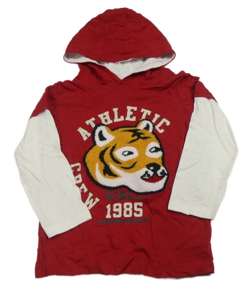 Červeno-bílé melírované triko s tygrem a kapucí Kiki&Koko