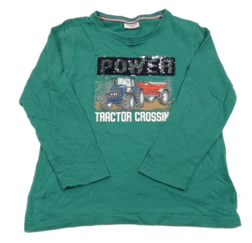 Tmavozelené triko s traktorem a překlápěcími flitry SALT&PEPPER