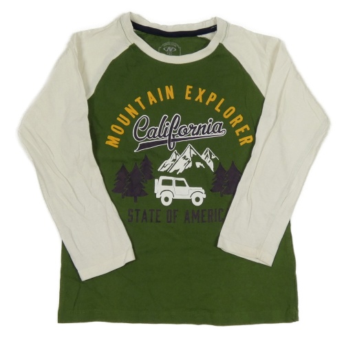 Khaki-světlebéžové triko s jeepem a horami