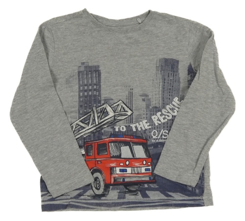 Šedé melírované triko s hasičským autem a mrakodrapy S. Oliver