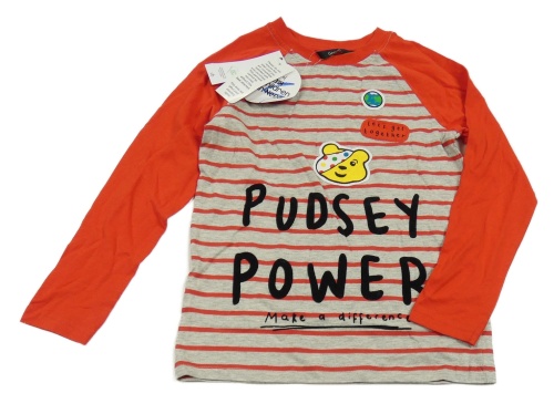 Nové - Červeno-šedé pruhované triko s medvídkem Pudsey George