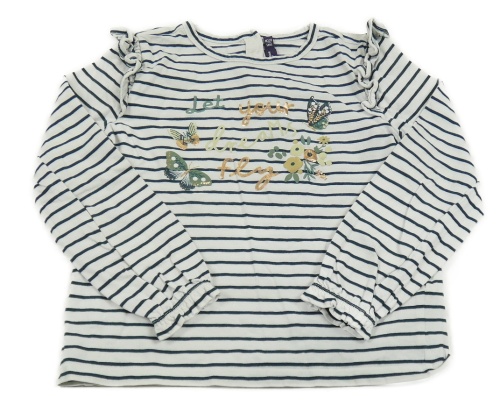 Bílo-tmavozelené pruhované triko s motýly a volánky Sergent Major