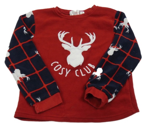 Vínovo-tmavomodré fleecové triko se sobem a kostkovanými rukávy