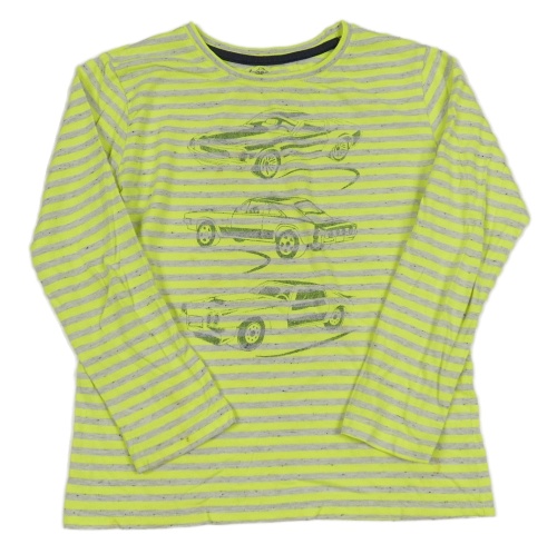 Šedo-něonově žluté pruhované triko s auty Topolino