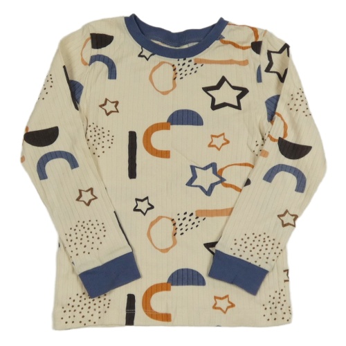 Béžovo-modré žebrované triko s hvězdičkami