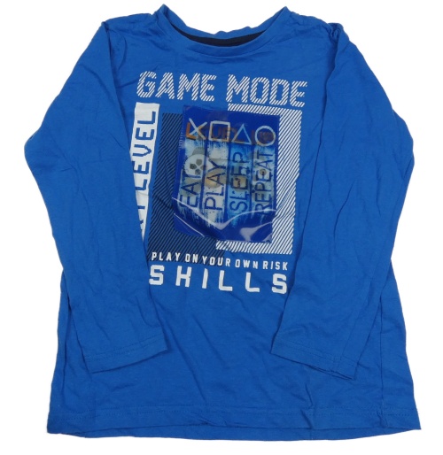 Modré triko s ovladačem a nápisy Y.F.K.