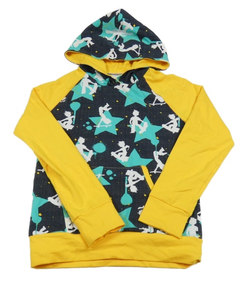 Tmavomodro-žluté triko s hvězdami, panáčky a kapucí