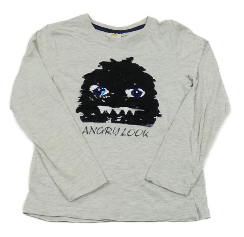 Šedé melírované triko s příšerkou z flitrů kids
