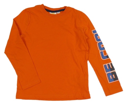 Oranžové triko s nápisem na rukávu