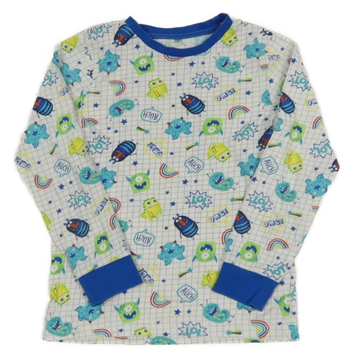 Bílo-šedé kostkované triko s příšerkami a modrými lemy C&A