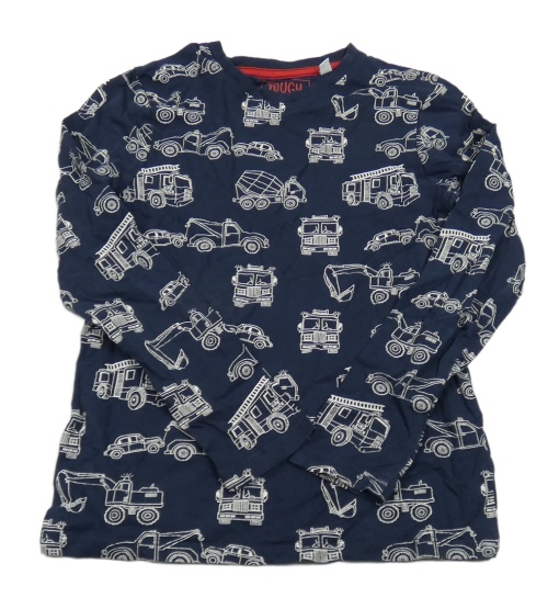 Tmavomodré triko s dopravními prostředky C&A