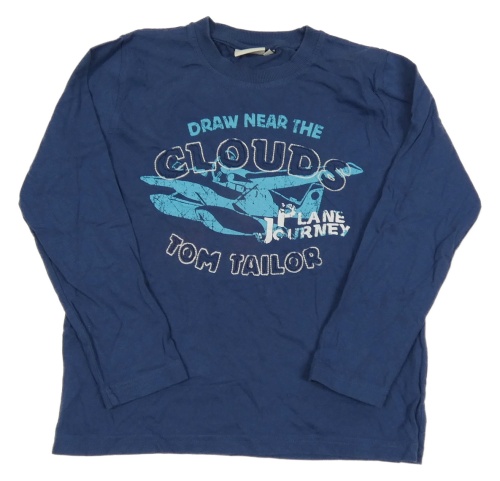Tmavomodré triko s nápisy a letadlem Tom Tailor