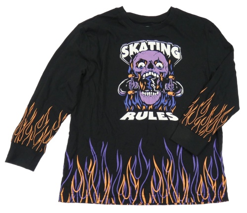 Černo-barevné triko s lebkou a plameny