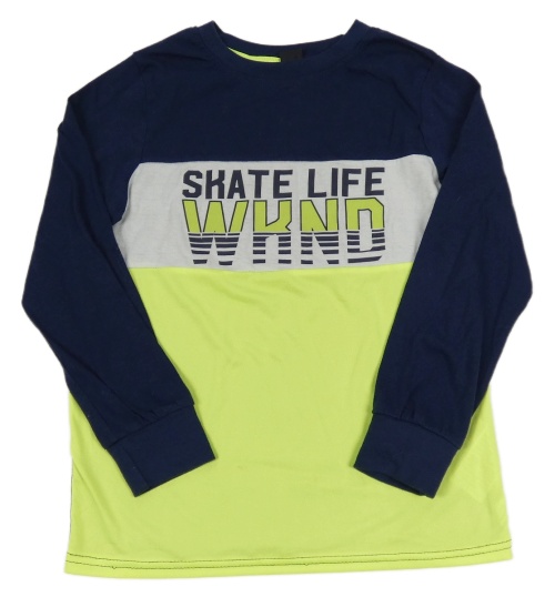 Tmavomodro-neonově zeleno-bílé triko s nápisem Y.F.K.