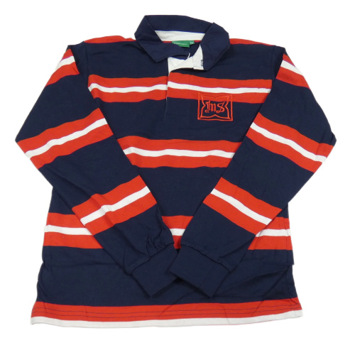 Tmavomodro-červeno-bílé pruhované polo triko s výšivkou