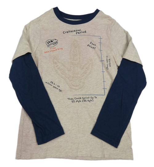 Béžovo-tmavomodré triko s 3D stopou dinosaura