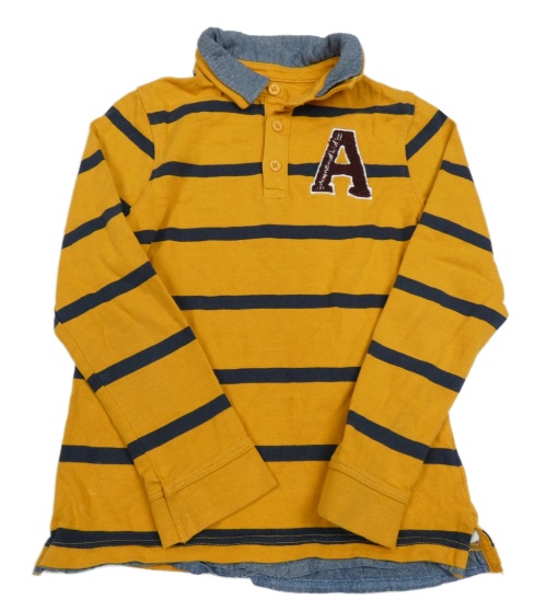 Okrovo-tmavomodré pruhované polo triko s písmenkem Vertbaudet