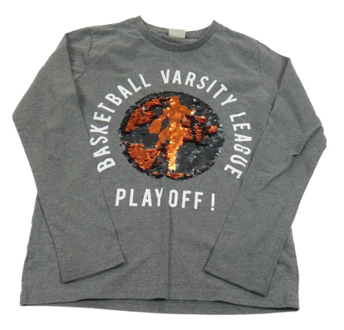 Šedé melírované triko s překlápěcími flitry s míčem/basketbalistou a nápisy LC WaIKIKI