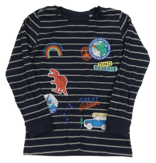 Tmavomodro-bílé pruhované triko s dinosaury C&A