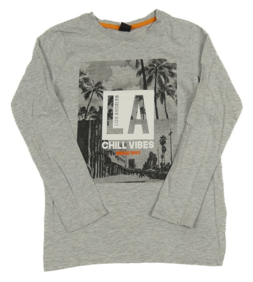 Šedé melírované triko s palmami a nápisem Y.F.K.