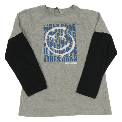 Šedo-černé melírované triko se smajlíkem a nápisy Kangaroo Poo