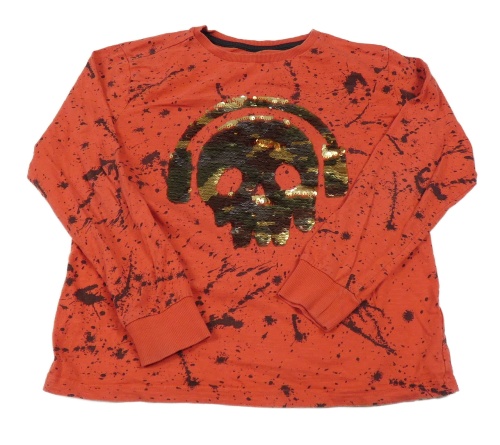 Červeno-černé vzorované triko s lebkou z překlápěcích flitrů Next