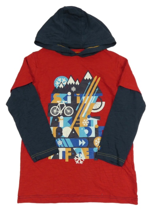Červeno-tmavomodré melírované triko s kolem a vločkami a nápisy a kapucí FAT FACE
