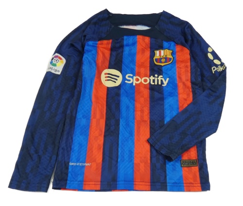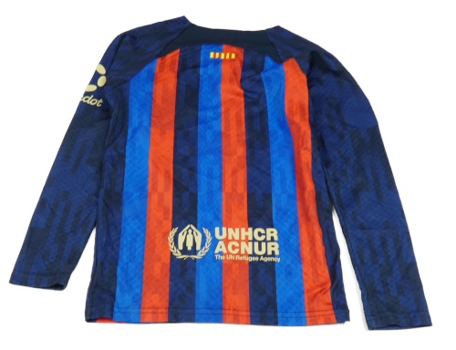 Tmavomodro-modro-červené pruhované fotbalové triko FC Barcelona