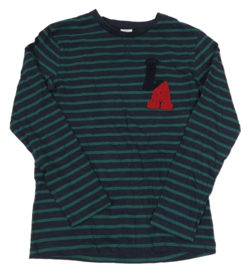 Tmavomodro-zelené pruhované melírované triko s písmenky TAPE 'A L'OEIL