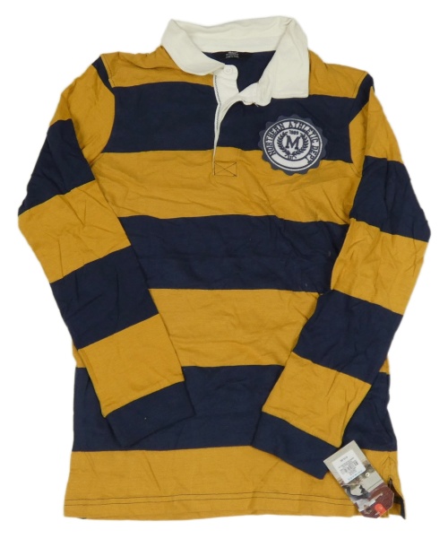 Nové - Tmavomodro-hořčicové pruhované polo triko s nášivkou Rebel