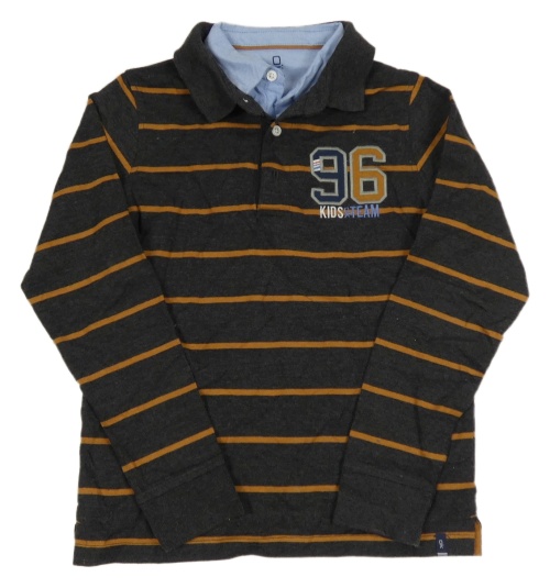 Tamvošedo-medové pruhované polo triko s číslem a košilovým límečkem Okaidi