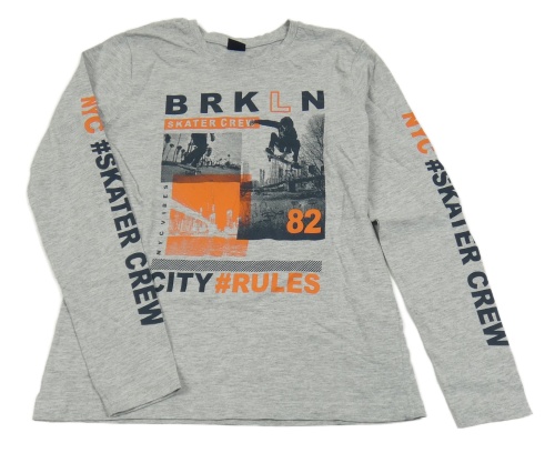 Šedé melírované triko se skateboardisty a nápisem Y.F.K.