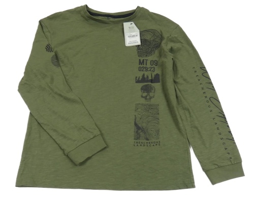 Nové - khaki melírované triko s lebkami Tu