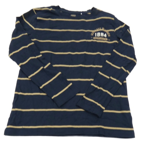 Tmavomodro-hnědé pruhované triko s číslem a nápisem Yigga