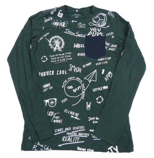 Tmavozelené triko s nápisy a kapsou Name it