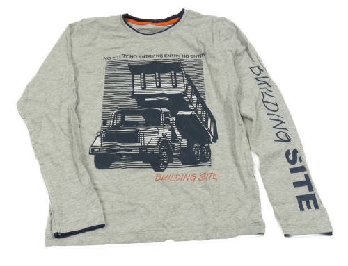 Šedo-tmavomodré triko s autem a nápisy