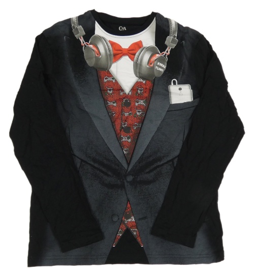Černo-tmavošedé triko s potiskem saka s motýlkem a sluchátky C&A