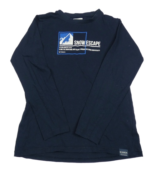 Tmavomodré triko s nápisy a horami GARCIA
