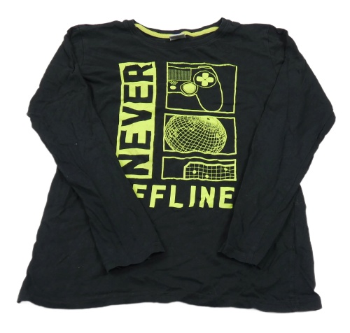 Černé triko s nápisy a ovladači Y.F.K.