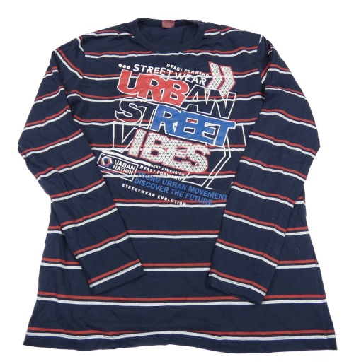 Tmavomodro-červeno-bílé pruhované triko s nápisem Y.F.K.
