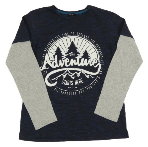 Tmavomodré žíhané triko s potiskem a šedými rukávy George