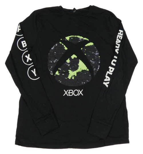 Černé triko s potiskem a obrázkem z flitrů - Xbox