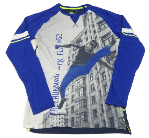 Tmavomodro-safíovo-šedé triko s potiskem We