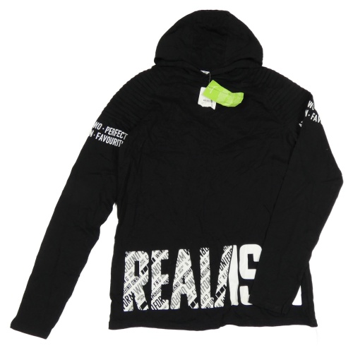 Nové - Černo-bílé triko s nápisy a kapucí