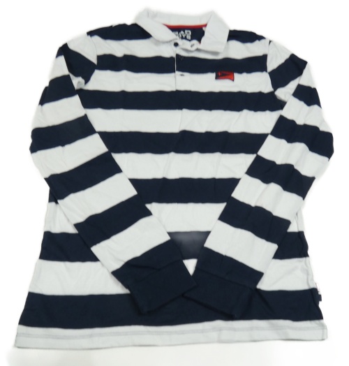 Černo-bílé pruhované polo triko s nášivkou vel.176