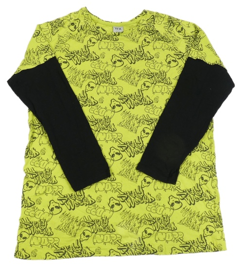 Světlezeleno-černé triko s mimozemšťany a nápisy Y.F.K.