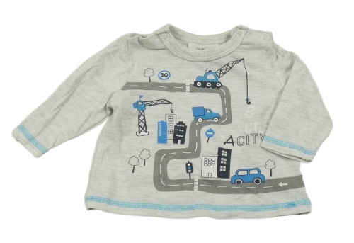 Světlešedé melírované triko s dopravními stroji a silnicí Topomini